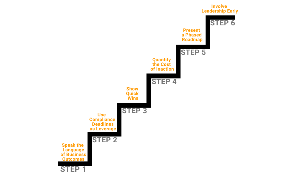 If compliance frameworks like CMMC or NIST 800-171 have upcoming deadlines, use them as a funding driver.